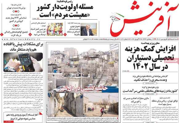 صفحه نخست روزنامههای صبح امروز سهشنبه ۱۵ فروردین ۱۴۰۲ را در ادامه مشاهده میکنید.
