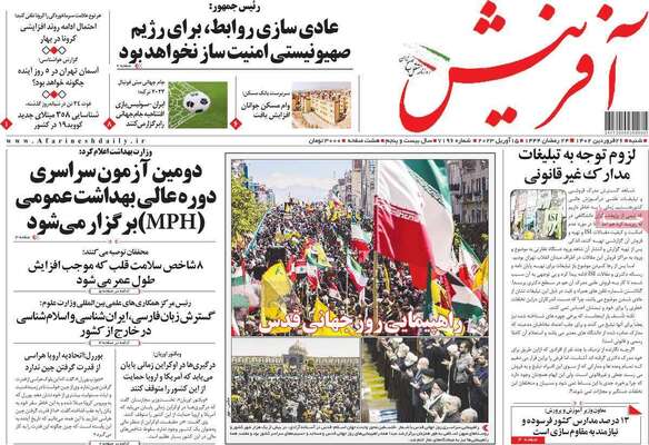 صفحه نخست روزنامههای صبح امروز شنبه ۲۶ فروردین ۱۴۰۲ را در ادامه مشاهده میکنید.