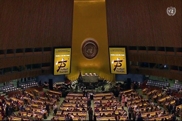 به گزارش ایکنا به نقل از المیادین، علیرغم فشارها و رایزنیهای فشرده رژیم صهیونیستی و آمریکا، اعضای سازمان ملل دیروز دوشنبه برای نخستین بار مراسم یادبود هفتادو پنجمین سالروز پاکسازی قومی مردم مظلوم فلسطین و روز تأسیس رژیم صهیونیستی (روز نکبت) را برگزار کردند.
