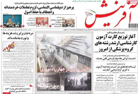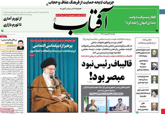 صفحه اول روزنامه های کشور