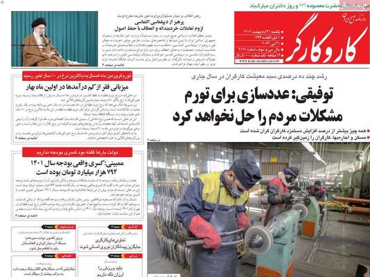 صفحه نخست روزنامههای یکشنبه ۳۱ اردیبهشت ۱۴۰۲