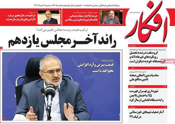 صفحه نخست روزنامههای سهشنبه ۲ خرداد ۱۴۰۲