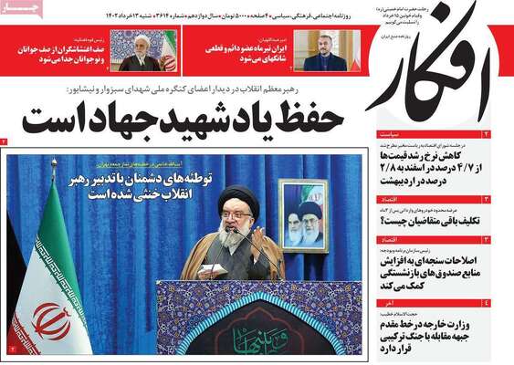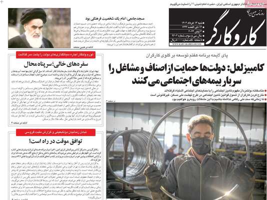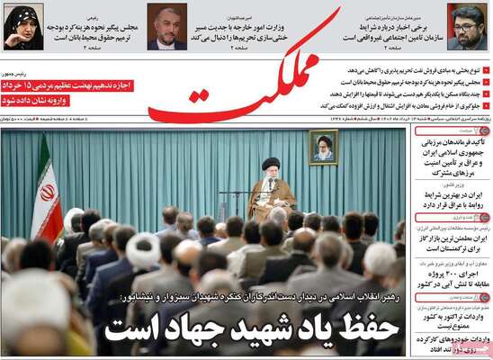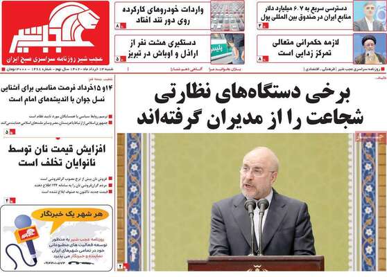 صفحه اول روزنامه های کشور