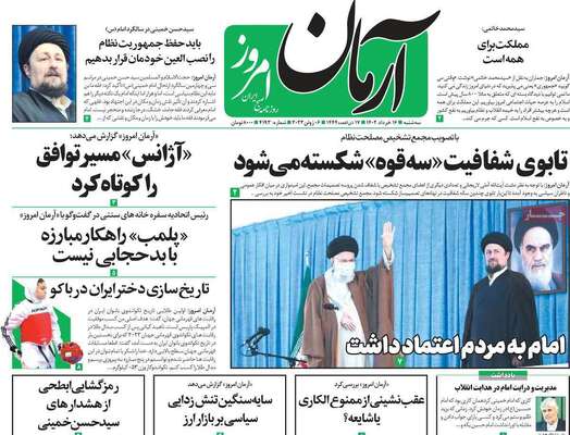 صفحه نخست روزنامههای سهشنبه ۱۶ خرداد ۱۴۰۲