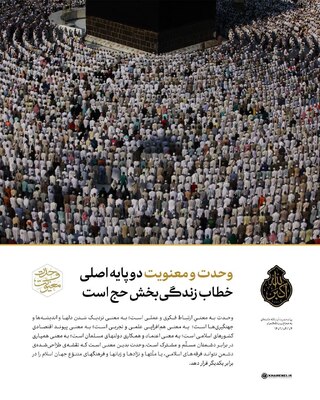 رهبر معظم انقلاب در بخشی از پیام به حجّاج بیتاللهالحرام فرمودند «کعبه به عنوان نقطه مرکزی و محور اصلی توجّهات آحاد مسلمانان، و آئین حج همچون نمونه کوچک از گستره متنوّع دنیای اسلام، میتواند در خدمت تعالیِ جامعه بشری و سلامت و امنیّت همه انسانها باشد». در ادامه پیام رهبر معظم انقلاب را در قالب فتوتیتر مشاهده میکنید.