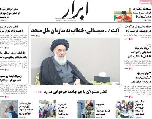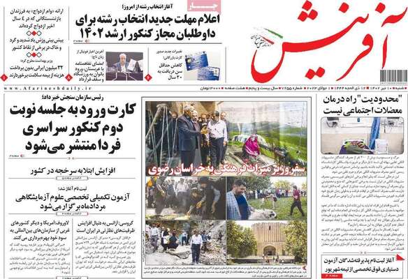 صفحه نخست روزنامه های کشور