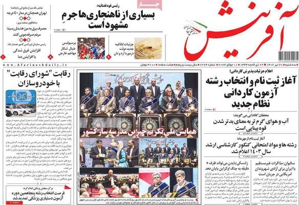 صفحه نخست روزنامههای صبح امروز سهشنبه ۲۰ تیر ۱۴۰۲ را در ادامه مشاهده میکنید.