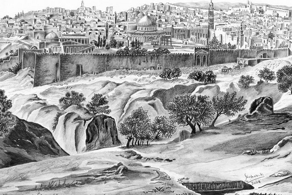این هنرمند حدود 30 نقاشی را به نمایش گذاشته است که تقریباً نیمی از آنها رنگی و نیمی دیگر عمدتاً سیاهوسفید است و در آن کوشیده شده که قدس را همانگونه که هست به تصویر بکشد. در این آثار دروازهها، منارهها، برجها، دیوارهای باستانی و بازارهای کهن در کنار مردم و فعالیتهای آنها ترسیم شده است.