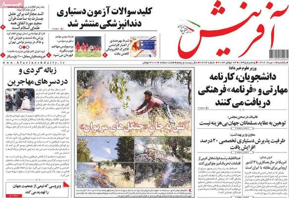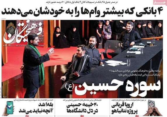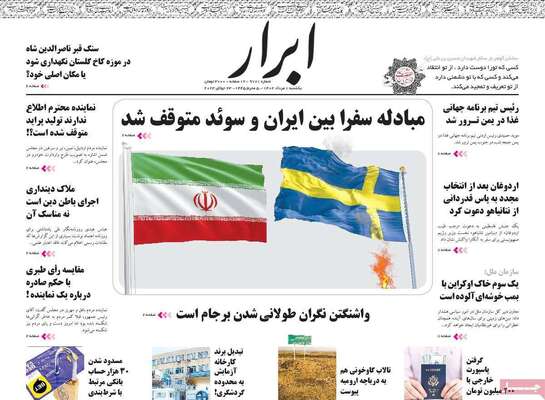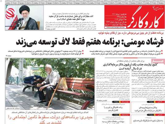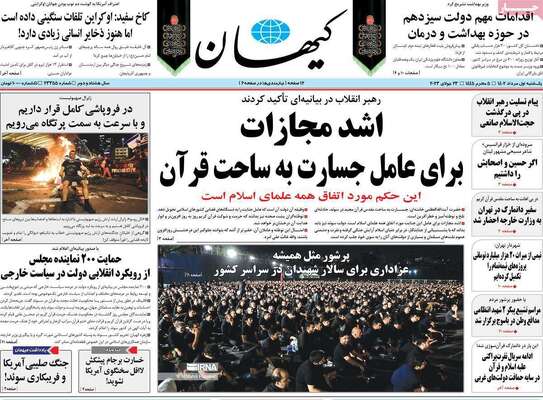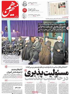 صفحه اول روزنامه های کشور