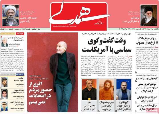 صفحه نخست روزنامههای یکشنبه 1 مرداد ۱۴۰۲