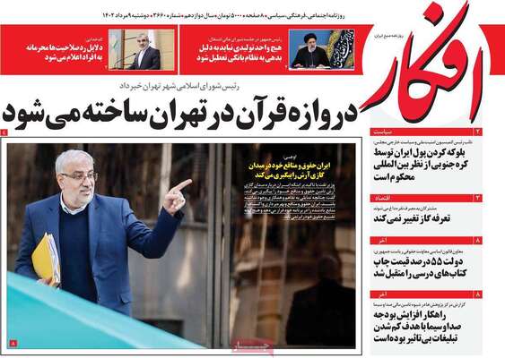 صفحه نخست روزنامههای دوشنبه ۹ مرداد ۱۴۰۲
