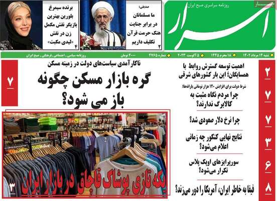 صفحه نخست روزنامههای شنبه ۱۴ مرداد ۱۴۰۲