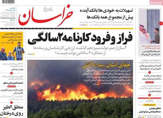 صفحه نخست روزنامههای یکشنبه ۱۵ مرداد ۱۴۰۲