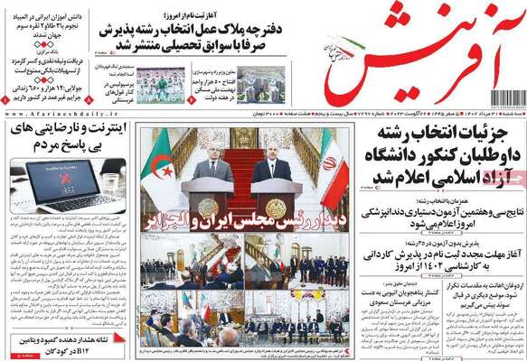 صفحه نخست روزنامههای سهشنبه ۳۱ مرداد ۱۴۰۲