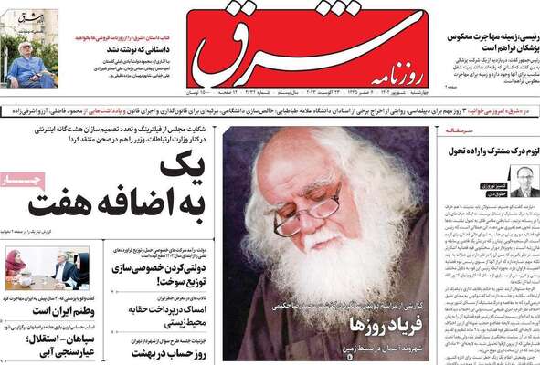 صفحه نخست روزنامههای صبح امروز چهارشنبه ۱ شهریور ۱۴۰۲ را در ادامه مشاهده میکنید.