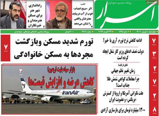 صفحه نخست روزنامههای چهارشنبه ۱ شهریور ۱۴۰۲