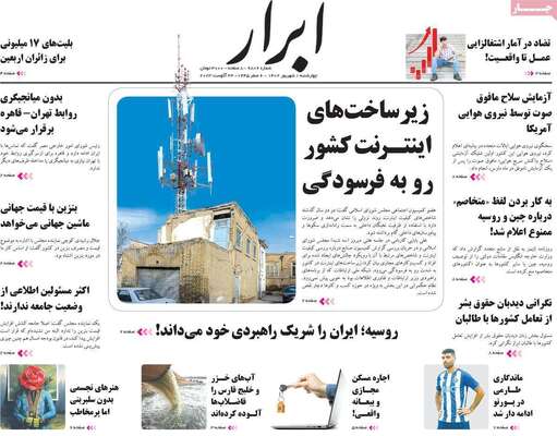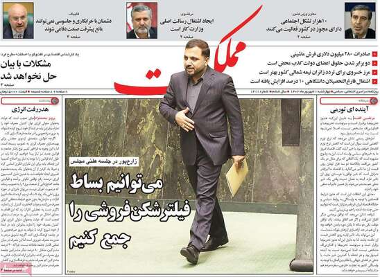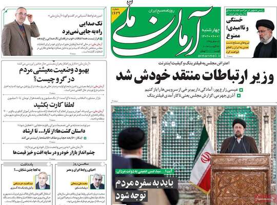 صفحه نخست روزنامه های کشور
