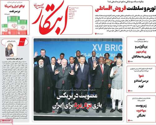 صفحه نخست روزنامههای شنبه ۴ شهریور ۱۴۰۲