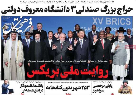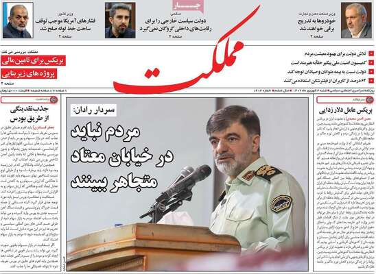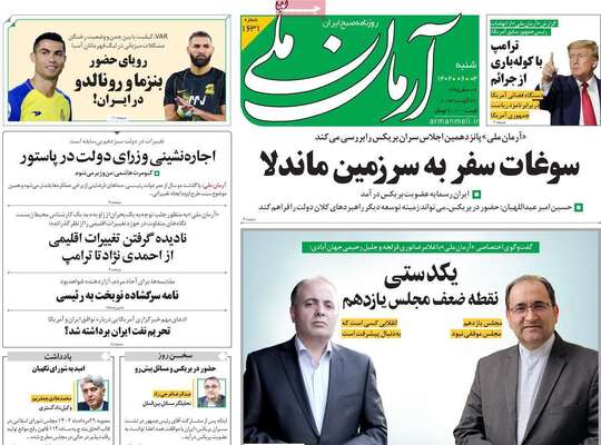 صفحه اول روزنامه های کشور