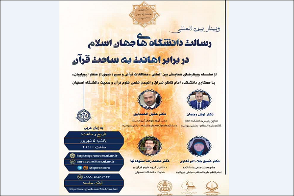 به گزارش ایکنا، این وبینار، وبینار دوم از سلسله وبینارهای همایش بینالمللی «مطالعات قرآنی و سیره نبوی از منظر اروپاییان» است که امشب، 5 شهریورماه ساعت 21 در بستر مجازی «گوگل میت» برگزار میشود.