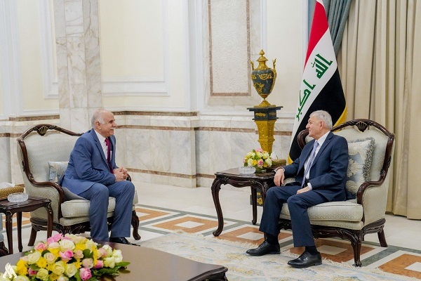 رئیس جمهور عراق امروز در کاخ بغداد از احمد عقل، سفیر فلسطین در عراق استقبال کرد.