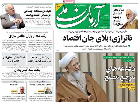 صفحه نخست روزنامههای یکشنبه ۳۰ آذر ۱۴۰۴