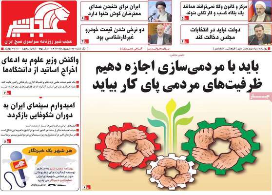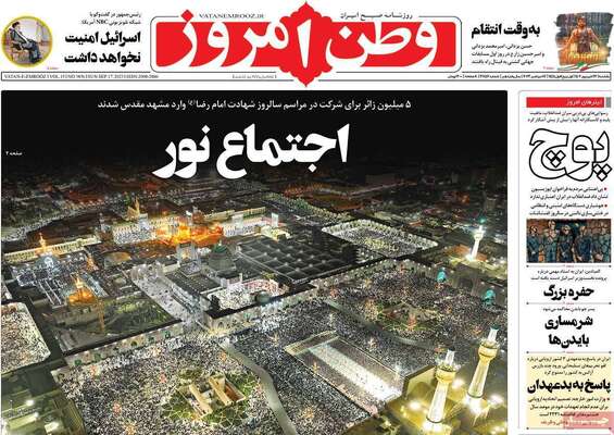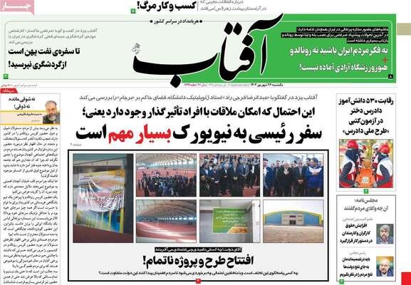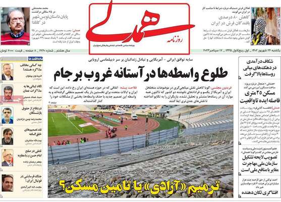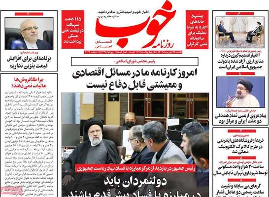 صفحه نخست روزنامههای یکشنبه ۲۶ شهریور ۱۴۰۲