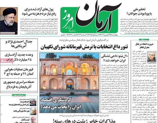 صفحه نخست روزنامههای یکشنبه ۳۰ آذر ۱۴۰۴