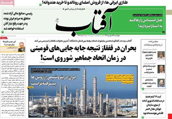 صفحه نخست روزنامههای چهارشنبه ۲۹ شهریور ۱۴۰۲