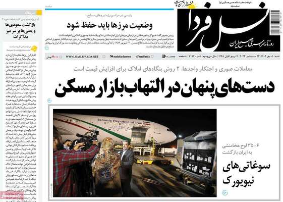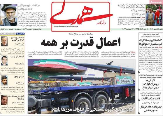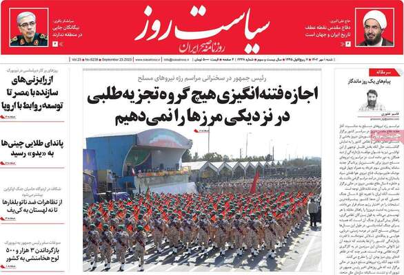 صفحه نخست روزنامههای شنبه ۱ مهر ۱۴۰۲