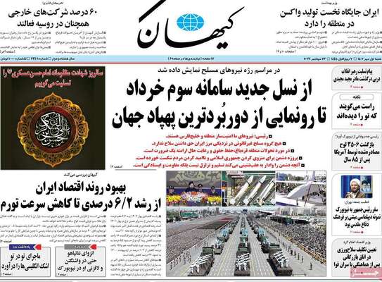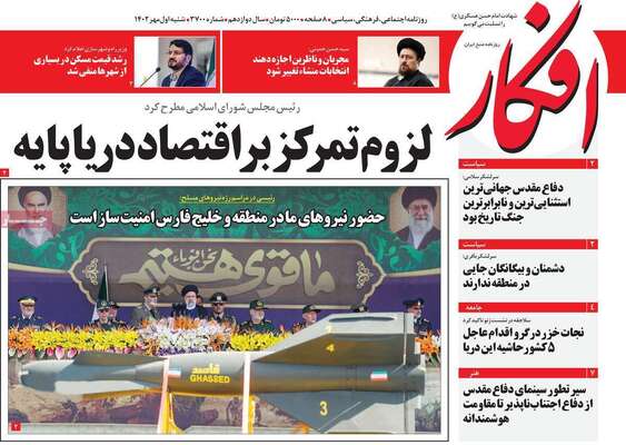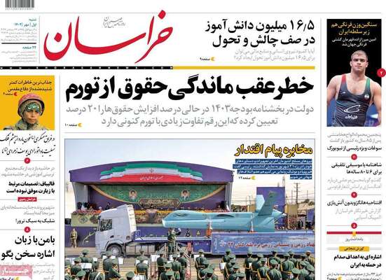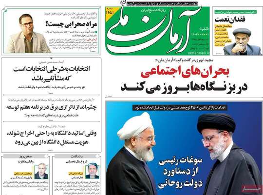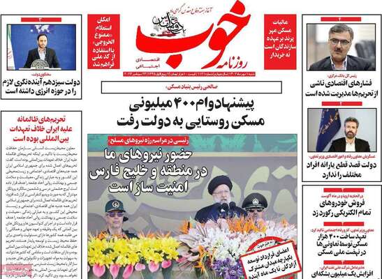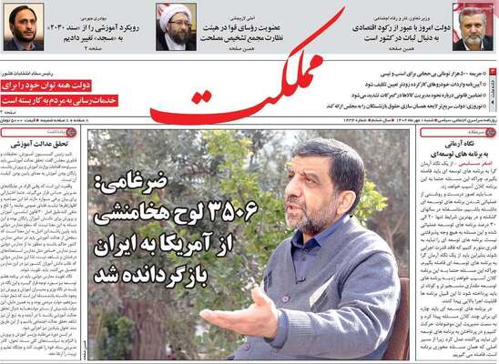 صفحه اول روزنامه های کشور