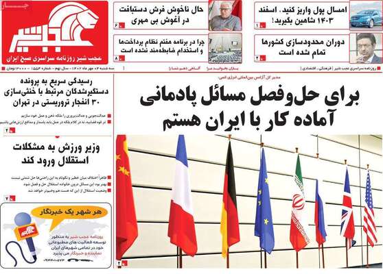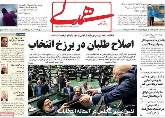 صفحه نخست روزنامههای سهشنبه ۴ مهر ۱۴۰۲ را در ادامه مشاهده میکنید.