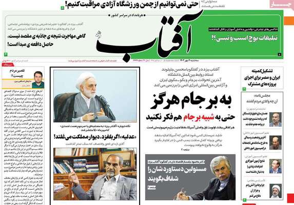 صفحه نخست روزنامه های کشور