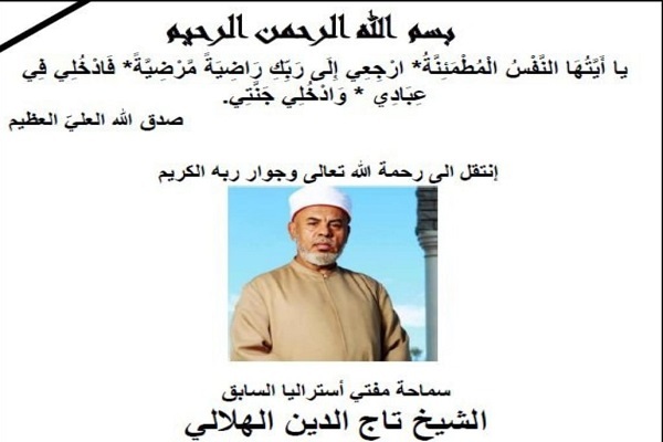 مرحوم تاجالدین الهلالی اخیرا در مصر اقامت داشت، اما با اقلیت مسلمان استرالیا در ارتباط بود.