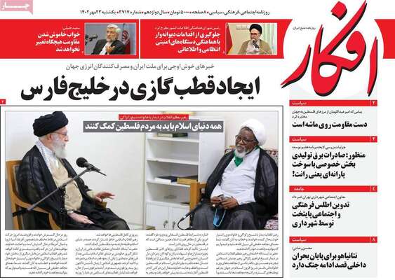 صفحه نخست روزنامه‌های یکشنبه ۲۳ مهر ۱۴۰۲