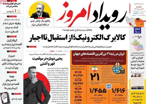 صفحه نخست روزنامه‌های صبح امروز یکشنبه ۲۳ مهر ۱۴۰۲ را در ادامه مشاهده می‌کنید.