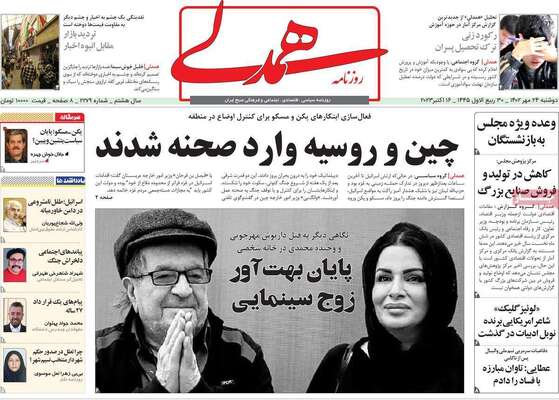 صفحه نخست روزنامههای دوشنبه ۲۴ مهر ۱۴۰۲