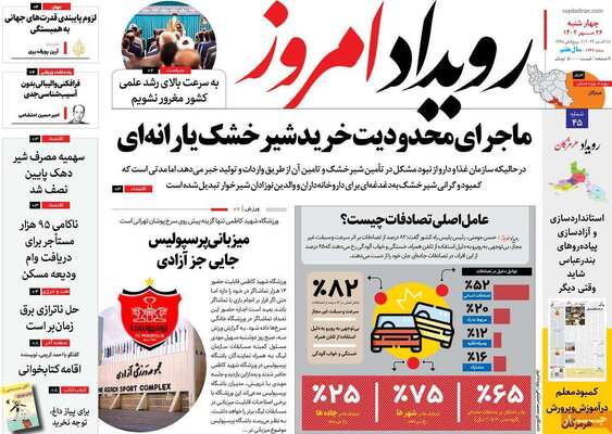 صفحه نخست روزنامههای چهارشنبه ۲۶ مهر ۱۴۰۲
