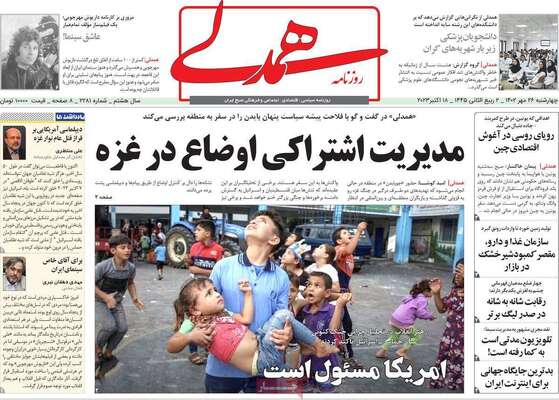 صفحه نخست روزنامههای صبح امروز چهارشنبه ۲۶ مهر ۱۴۰۲ را در ادامه مشاهده میکنید.