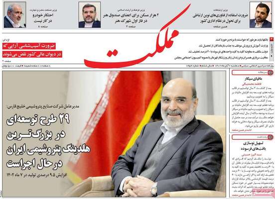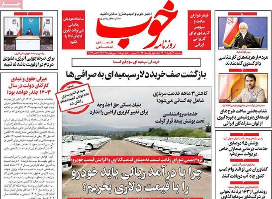 صفحه نخست روزنامههای سهشنبه ۲ آبان ۱۴۰۲