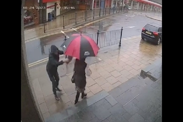 در تصاویر ویدئویی، این خانم مسلمان در حال عبور از پیاده رو است که هدف حمله قرار میگیرد.