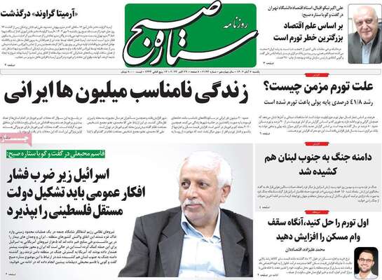 صفحه نخست روزنامههای یکشنبه ۷ آبان ۱۴۰۲