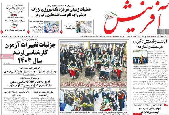 صفحه نخست روزنامههای دوشنبه ۸ آبان ۱۴۰۲