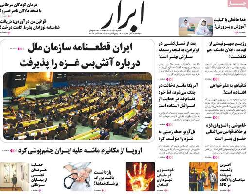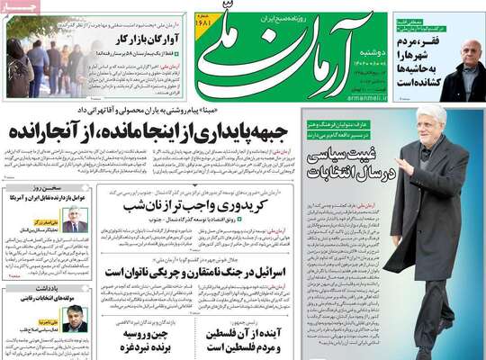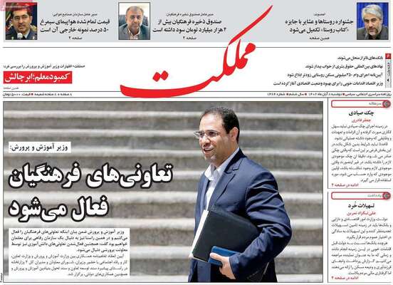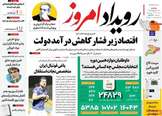 صفحه اول روزنامه های کشور