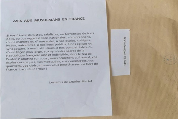 در این نامه تهدیدآمیز آمده است: «مدارس، مساجد، مغازهها، و محل شما را آتش میزنیم و شما را از فرانسه اخراج میکنیم».