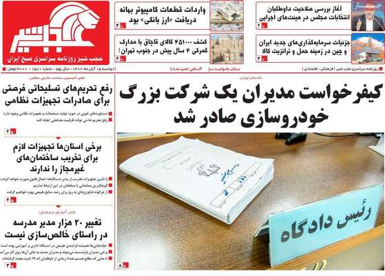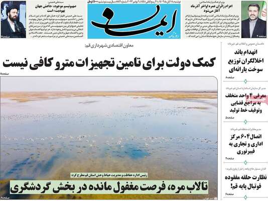 صفحه نخست روزنامههای یکشنبه ۳۰ آذر ۱۴۰۴
