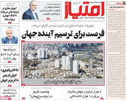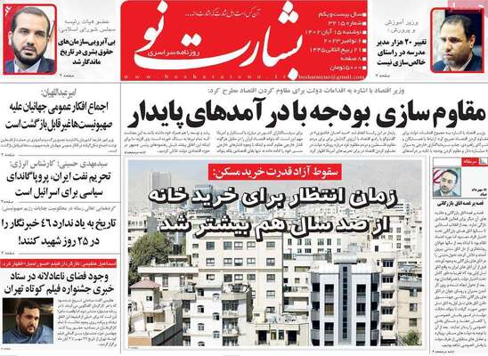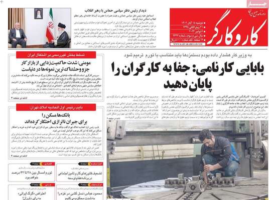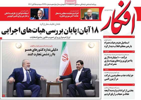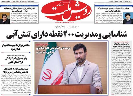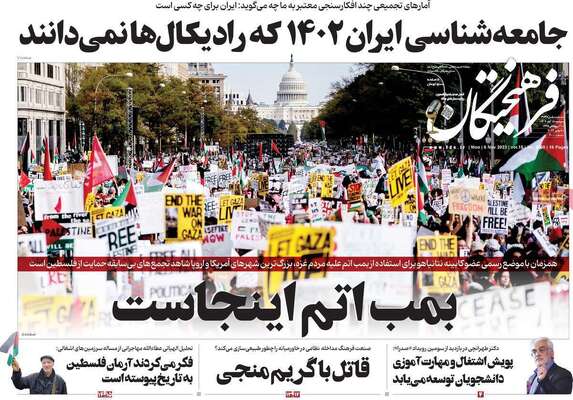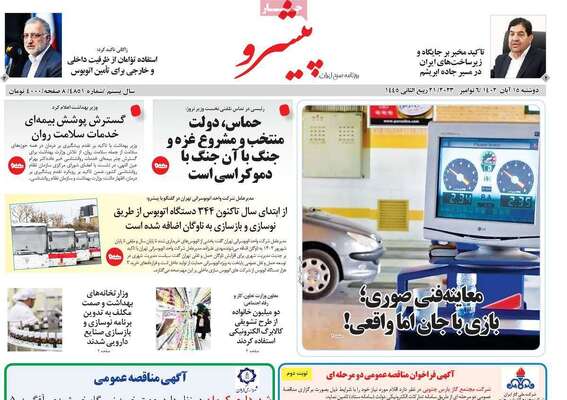 صفحه نخست روزنامههای دوشنبه ۱۵ آبان ۱۴۰۲