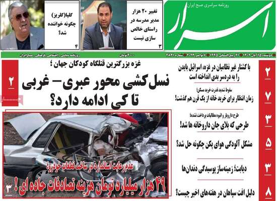 صفحه نخست روزنامههای صبح امروز دوشنبه ۱۵ آبان ۱۴۰۲ را در ادامه مشاهده میکنید.