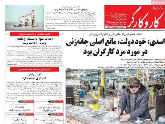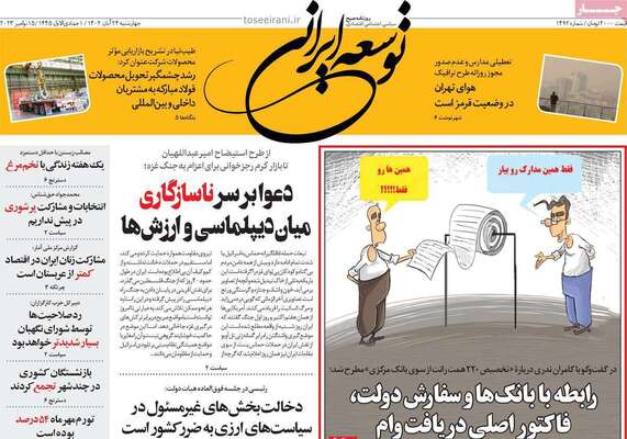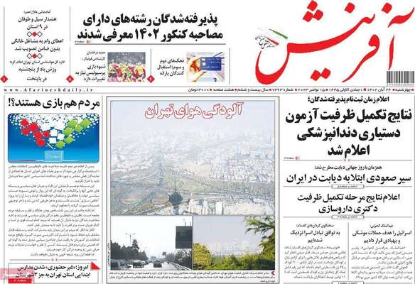 صفحه نخست روزنامههای چهارشنبه ۲۴ آبان ۱۴۰۲