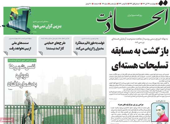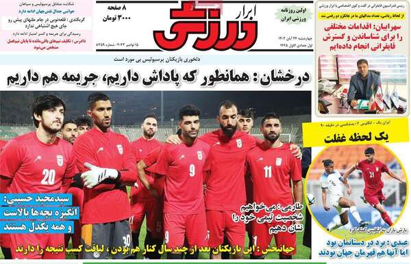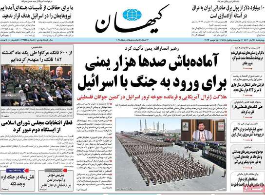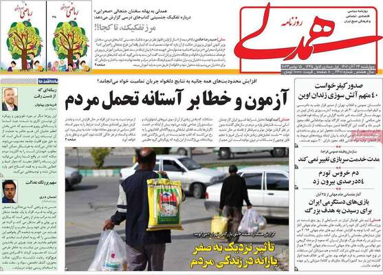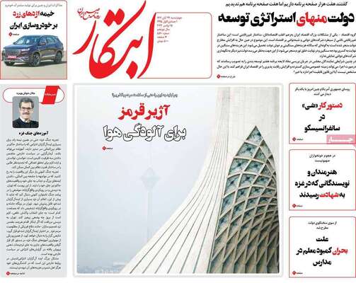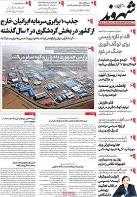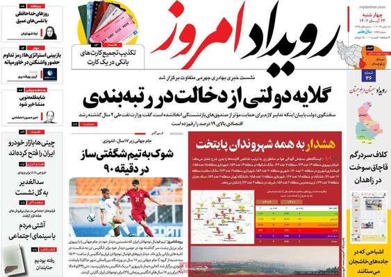 صفحه نخست روزنامه های کشور